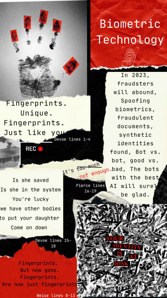 Another student in the same course produced the following visual bibliography of her research related to literary representations of biometrics.